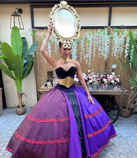Pour donner vie à ces univers, nous disposons d’un catalogue de plus de 250 costumes, entièrement faits main en France, alliant exigence artistique, qualité des matériaux et sens du détail.